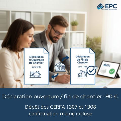 🏢 Déclaration d'ouverture / fin de chantier – 90 € TTC